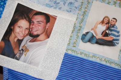 I could not for the life of me figure out what size to cut the strips of fabric to go around the photos to center them in 10 1/2" squares--which they had to be to fit into the blocks. I ripped out more seams than I sewed, and none of the photos ended up exactly where I intended them to be. It seemed like every scrap of mathematics I ever knew had left me. When I was taking algebra and uttered the oft-asked question, "Why will I ever need to know this?", I wish somebody had said, "Because one day you'll be making a quilt for which you'll need to turn variously sized rectangles into 10 1/2" squares." Then I might have paid more attention.