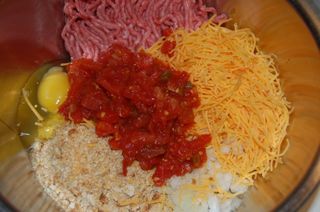 This recipe evolved from one I found in a Kraft pamphlet that I got at Sam's last week. I changed it up a little bit to make use of things I already had on hand. It was delicious. I think next time, though, I should fill the muffin cups a little fuller because they cook down. I bet if you used ground sirloin or ground round instead of ground chuck (which I used), they wouldn't cook down as much.