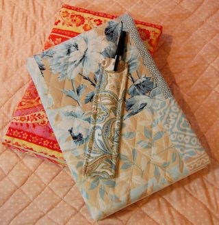 Last week, I made this quilted steno pad cover for Kai, who hosted the fabulous and fun Favorite Summer Read Swap. I used prequilted fabric to make it, although you could quilt your own, and it was very easy to make. Another blogging friend, Melinda, sent me one of these a while back, and I take it everywhere with me. (The one Melinda made for me is shown underneath Kai's blue one.) I have a tutorial if anyone is interested.This post was migrated from the old blog. To see the comments on the original post, CLICK HERE. To add a new comment, click "Post a Comment", below.