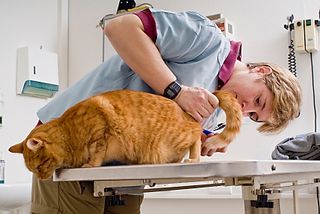 This cat is being "vetted," but I don't think that's the meaning I'm looking for.