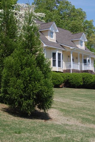 Does The Yellow House overlook a wooded property as it appears to do in the dogwood photo?