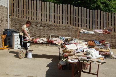 I met Sally at her house and, with me driving and her navigating from her Mapquest directions, we zigged and zigged and dodged and weaved through North Shelby County until we found the fabric sale that we'd discovered on Craig's List. We were ready to do some serious quilting fabric shopping. The only problem with that is that all the fabric turned out to be decorator fabric.