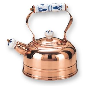 I put my old tea kettle in one of my donation boxes several months ago, and ever since then I've had to heat water for my tea in a sauce pan. (I know I can use the microwave, but I don't like to heat my tea water that way.) So last night, I decided it was time to acquire a new tea kettle. I've always wanted a copper one, so I ordered the one in the photo. I think this might be the first brand new tea kettle I've ever had. I usually buy them at yard sales; and my mama gave me her old Paul Revere one time. I use them till the bottom drops out almost. I'm not one to give up on a perfectly good tea kettle. I'm thinking this one will last me for the rest of my tea-drinking days.