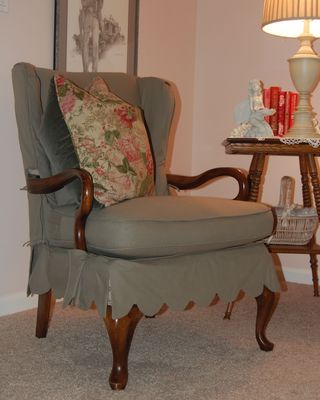 Love that slip cover on the chair. The scallop is gorgeous. I am going to be slip covering some of my furniture, too.