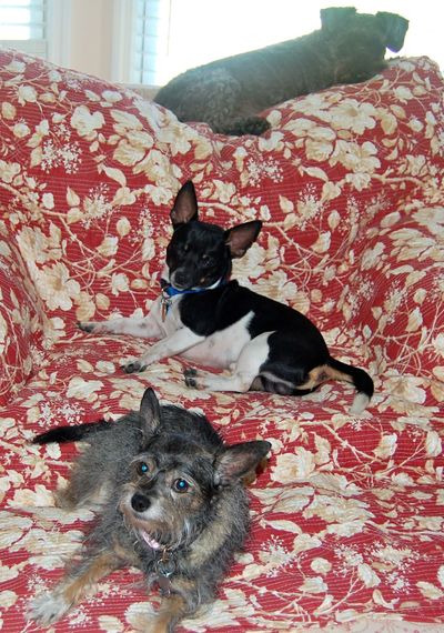 Three adorable doggies for sure! Also, I love the upholstery - great pattern. Hope you are having a more peaceful day with the pressure washing finished.