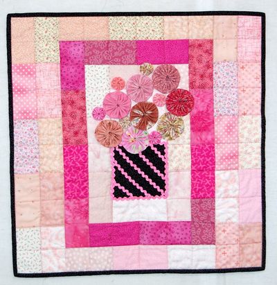 I love that quilt with the yo yo flowers. Thanks for the information.