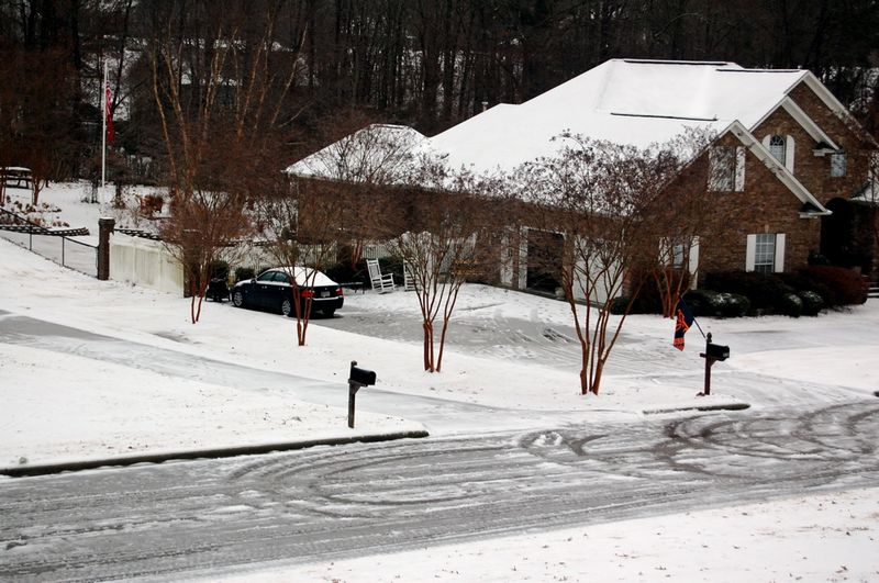 It might not look like a lot of snow to some of you. And well, it's not. But that stuff on the street--it's not just snow. It's actually a thick sheet of ice. No traffic moving around here today.