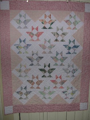 No progress for me, I'm sorry to say. But just look at this beautiful donation quilt that Blogless UFO Buster Sissa has finished. She's donating it to an organization that helps young, often single mothers. Some little one is going to be blessed with this pretty. Since I especially love basket quilt and the color pink, this just cheers my soul.