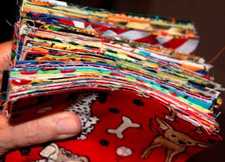 See the photo above? I received 120 wonderful 5" I Spy Charm Squares in the mail yesterday from Sandra's swap. I've gone through them all several times. Each one is different. I haven't decided how I'll use them in a quilt yet. Maybe Snowball, which is quick and fun. Maybe just sew them together with no additional pieces--square to square. That would be fun. We'll see.