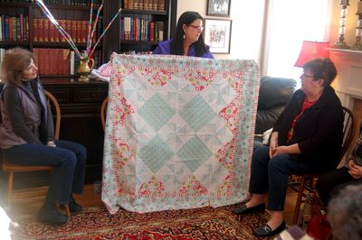 From left: Rita, Mary S. with one of her pretty pinwheel quilts, and Sally