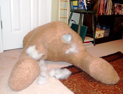 That hole in Bentley's derriere looks heart-shaped! I still say a calico patch with blanket stitching would remedy Bentley's em-bear-ass-ment.