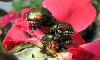 You folks were right. Japanese Beetles have infested my low-maintenance, carefree knockout roses. It's like Bug City out there.