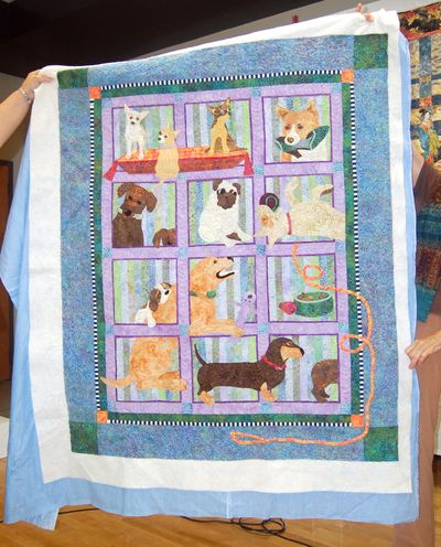 This might make you feel better. This is a quilt that I photographed at our last guild meeting. I'm afraid I have completely forgotten who pieced it. (Perhaps one of my blog-reading guild friends can tell me.) But I do remember that our friend from Crossville, Tennessee, Elayne V., quilted it. That woman is an absolute artist with the long arm. Since I'm a dog lover and a quilt lover, you know I'm just crazy about this quilt.