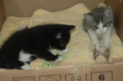 See these babies? Guess what? They're scheduled to be the next residents of The Yellow House. The same house in which live Sophie and Skipper. The same dogs that go crazy if they even get a whiff of cat.