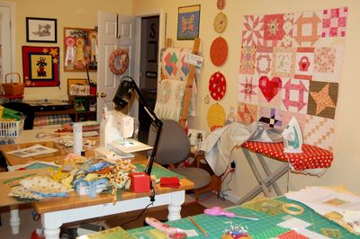 NO, NO, NO!!! Your sewing room looks EXACTLY as it SHOULD for a wonderful, creative person! If it were PERFECT all the time, I'd have to call you Martha Stewart Cleveland. And as much as I admit to admiring Martha's ability to do so many things 'perfectly', I don't think she is NEARLY as sweet a human being as my Susan! So ... that's MY 2 cents worth!