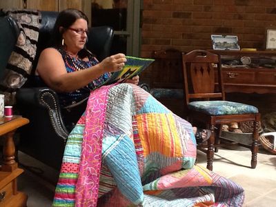 I'm still here, reading all your posts! And you KNOW I love the one with the photo of Taco cuddled up to Ms. Sophie! I had to save it, of course! Makes me so happy! Also making me happy is seeing the lovely quilts! And WOW to that christening dress! Beautiful, and REALLY special! Just like my Susan! LOVE YOU!!!!