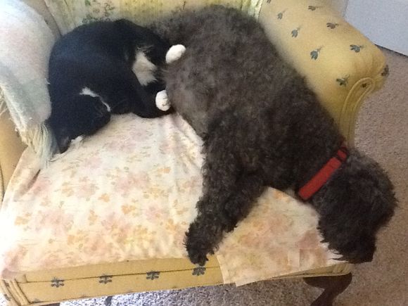 Adorable picture Susan and Missy is right, that is complete trust. The vet once told me that when a dog exposes it's underbelly, like Sophie is doing letting Taco sleep with her like that, or lying/sleeping on their back with all fours in the air, it means they are 100% relaxed and secure in their surroundings and all that goes on around them. But all that aside, it really is a cute, cute photo. Hope your internet problems get worked out soon. Hugs...