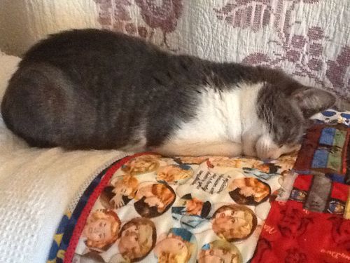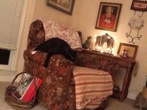 So I'm off now to Michaels to buy card stock for printing Grinch poems. Then back in time to feed Jesse before he leaves for work. He's on night shift again this week--a situation that he likes more than I do. For some odd reason, I'm still not sleeping while he's gone at night. I know where he is, I'm fairly sure he's safe and sound, but there's just something about somebody being away from my house when they should be home that keeps me alert. I think Sophie feels it too. Every time I would doze off last night, she would get down from her sleeping chair and come over and paw me on the shoulder or arm to wake me up. But this is the last night he's working night shift until after Christmas, I think. Maybe we can get some sleep, Sophie.