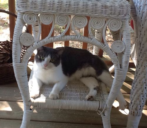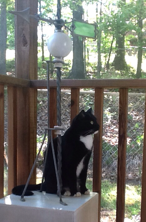 Taco and Bella love the back porch. Taco even knows that it's the door knob that let's one get to the porch. He will stand on his hind feet and touch the knob and mew at it. But he just can't figure how it works. I pray he never does.