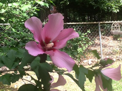 I have not been able to work in the yard any this year, except the adventure of planting the clematis. (I still have spots on my feet and legs from the fire ants.) Steve keeps my grass cut, the bushes trimmed, and a few of the weeds weeded. I also got him to uproot my old, tired, half-dead azalea bushes at the side of the house and plant some more red knockout roses. Still, things look a little sad out there. But what can grow and bloom without much attention is doing so.