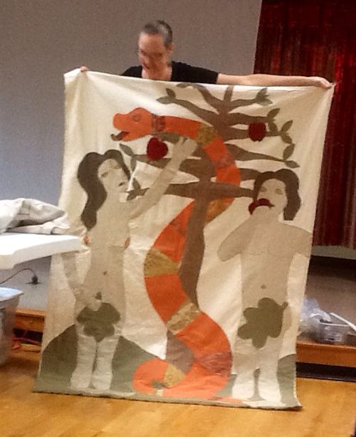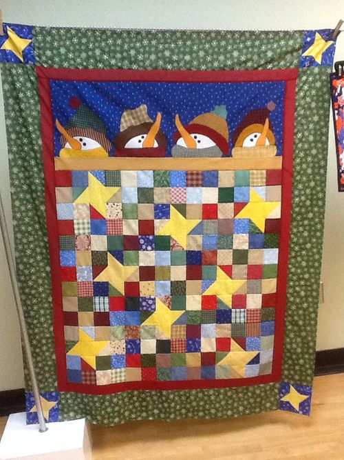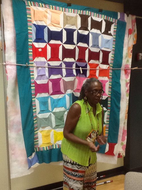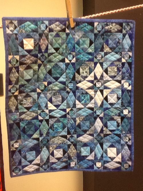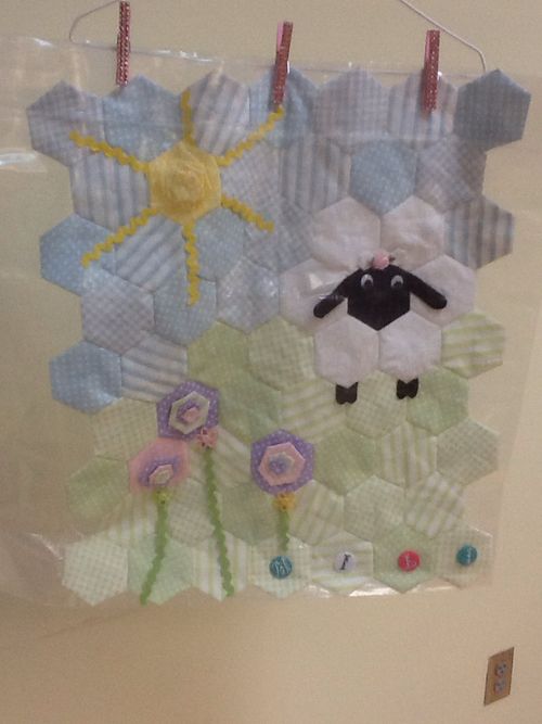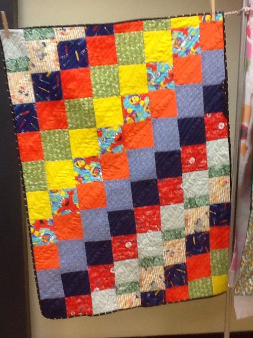 I'm finally sewing the hanging sleeve on the baby quilt so soon it will be on its way to the baby girl who it will belong to ... or would that be "to whom it will belong"?